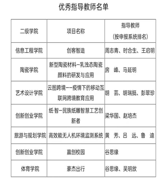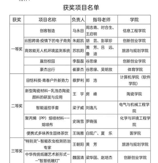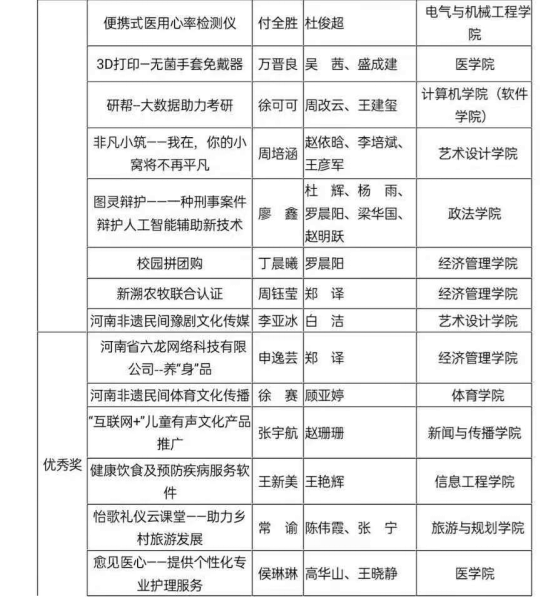 经过二级学院推荐,校级复赛、决赛等环节的激烈角逐,此次比赛中william威廉亚洲官方团总支书记谷思缘和辅导员吴明放指导的《豪杰出行》项目获得一等奖;顾亚婷指导的《河南非遗民间体育文化传播》项目、谷思缘和高峰指导的《翼飞体育》项目获得了优秀奖;谷思缘和吴明放被评选为优秀指导教师。