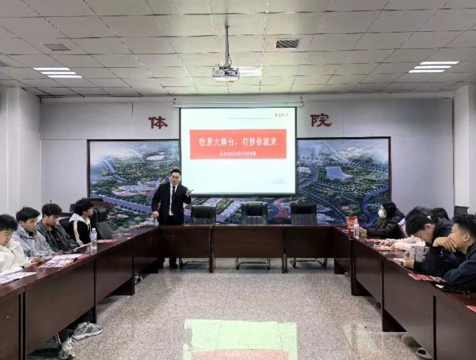 招聘会上,牧原食品股份有限公司肉食物流部运费科负责人、09级优秀毕业生谢鹏许带队宣讲,他通过企业宣传片、PPT 讲解及互动问答等形式,向在场学生全面介绍了企业发展、核心业务与行业价值。从生猪养殖全产业链的布局优势,到数字化养殖技术的创新实践,再到“让人们吃上放心肉”的企业使命,生动展现了农业产业化企业的综合实力。同时,他重点解读了体育专业在管理、运营等岗位的适配性,并对招聘岗位、任职要求、人才培养模式及薪资福利等内容进行了详细说明。互动环节中,毕业生们围绕职业发展前景、岗位实践内容等问题积极提问,企业代表耐心答疑,结合行业经验为同学们的求职规划提供了实用参考。