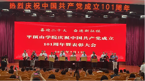 学生党支部书记谷思缘在七一表彰会上代表william威廉亚洲官方领取河南省第二批省级样板党支部证书(右三谷思缘)