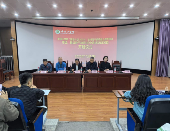 仪式在庄严的国歌奏唱中拉开帷幕。于长立副校长在欢迎词中重点提及学校服务“国培计划”的优势基础:作为硕士学位授予单位、河南省示范性应用技术类型本科院校,平顶山学院不仅建有体育训练馆等完备设施,更在足球教学研究领域形成特色——陶瓷学院对古代捶丸文化的研究推动传统体育活态传承,龙狮队多次斩获国家级金奖,2023年成立的中国龙狮运动学院更是为体育人才培养注入新活力。“本次培训是助力农村足球教育提质的关键抓手,”于长立强调,希望学员们以“空杯心态”投入学习,实现专业能力与育人理念双重提升。