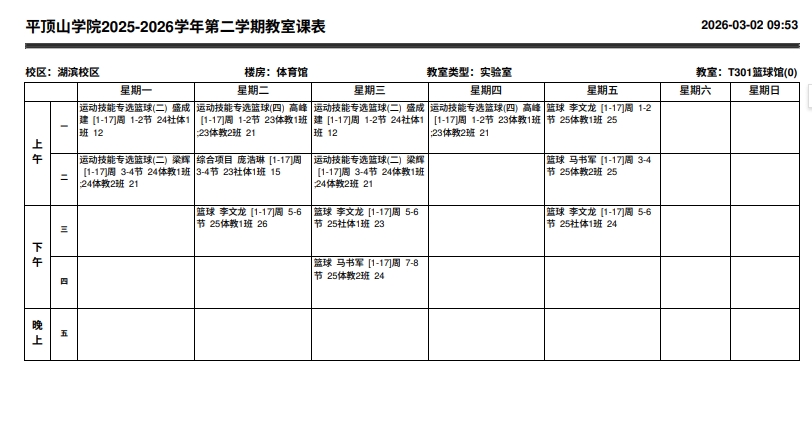 T301篮球馆课表